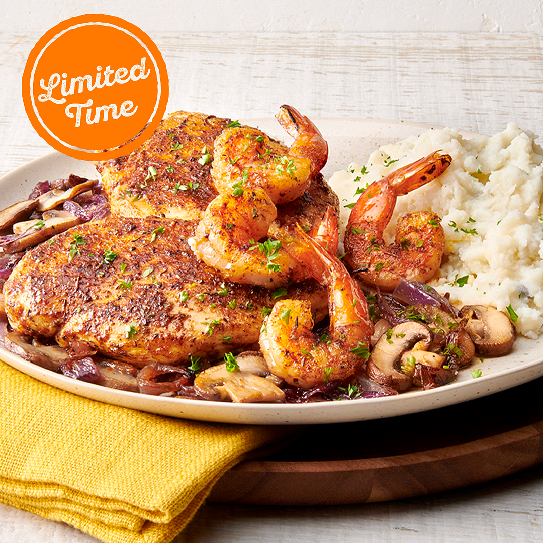 - Blackened Shrimp & Sausage Pasta - Dive into a creamy fusion of flavors with penne pasta, shrimp, and sausage, offered at US$20.99.